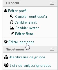 Pero los usuarios registrados pueden cambiar entre la vista clásica y la horizontal. Los usurios visitantes se atienen a la vista especificada global. He aquí los pasos para cambiar ajustes a nuestro perfil.