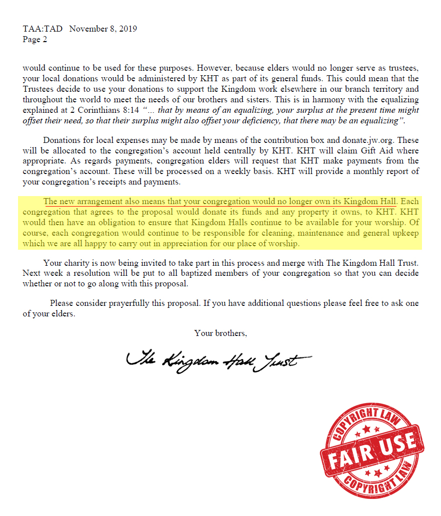 En Reino Unido la Organización está tomando el CONTROL de los Salones del Reino y las finanzas... En ese país está registrada como Organización de Caridad...