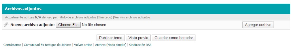 1.1. Cuando abres un tema o respondes a uno o editas uno, ve a la parte de abajo a Archivos adjuntos, y haz clic sobre el botón Browse... (Examinar..., Choose File... según otros navegadores).